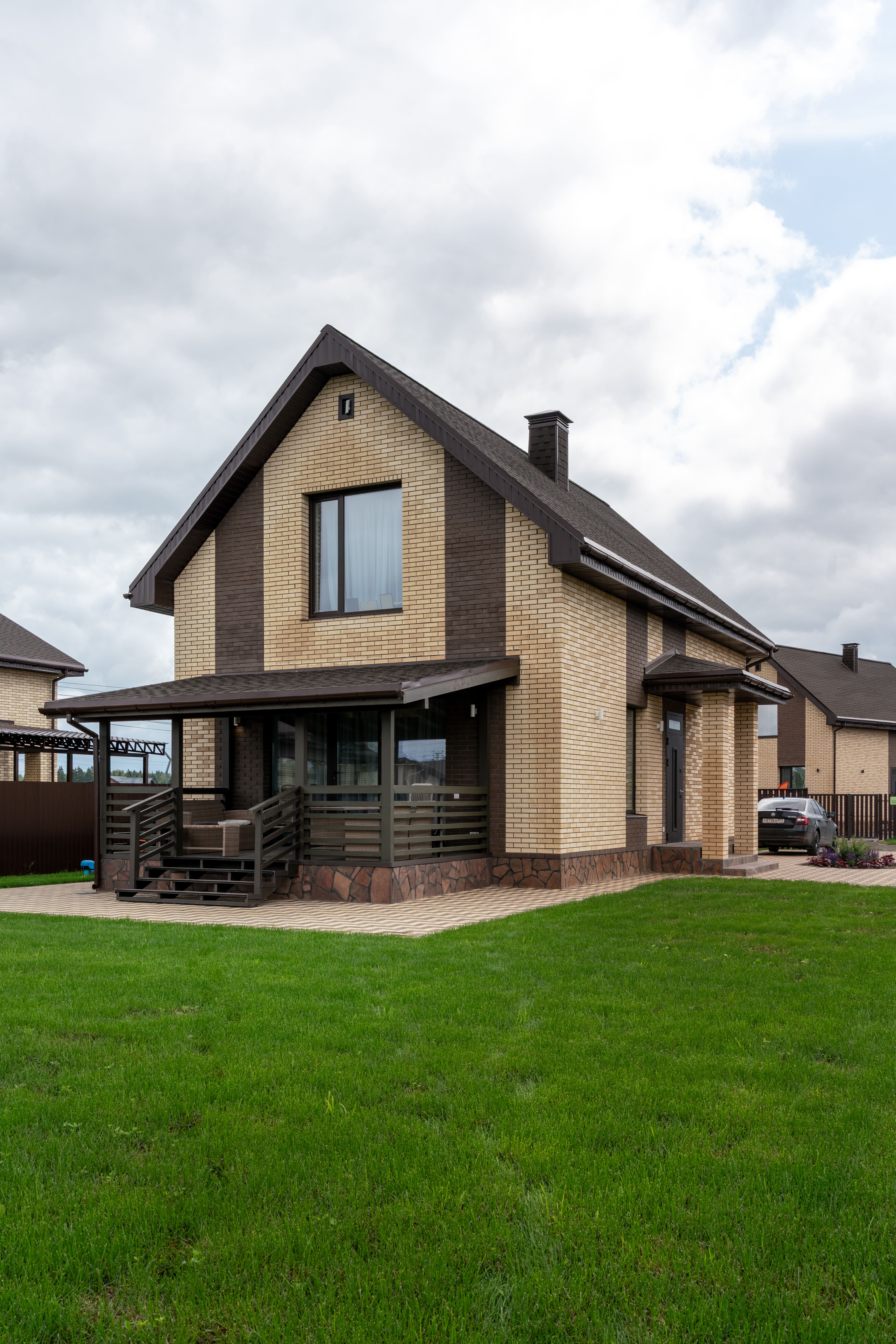 Дома сдаются с чистовым ремонтом и коммуникациями: магистральный газ заведен в дом, 15квт электроэнергии, собственная скважина и септик. Выровненный и очищенный от строительного мусора участок.